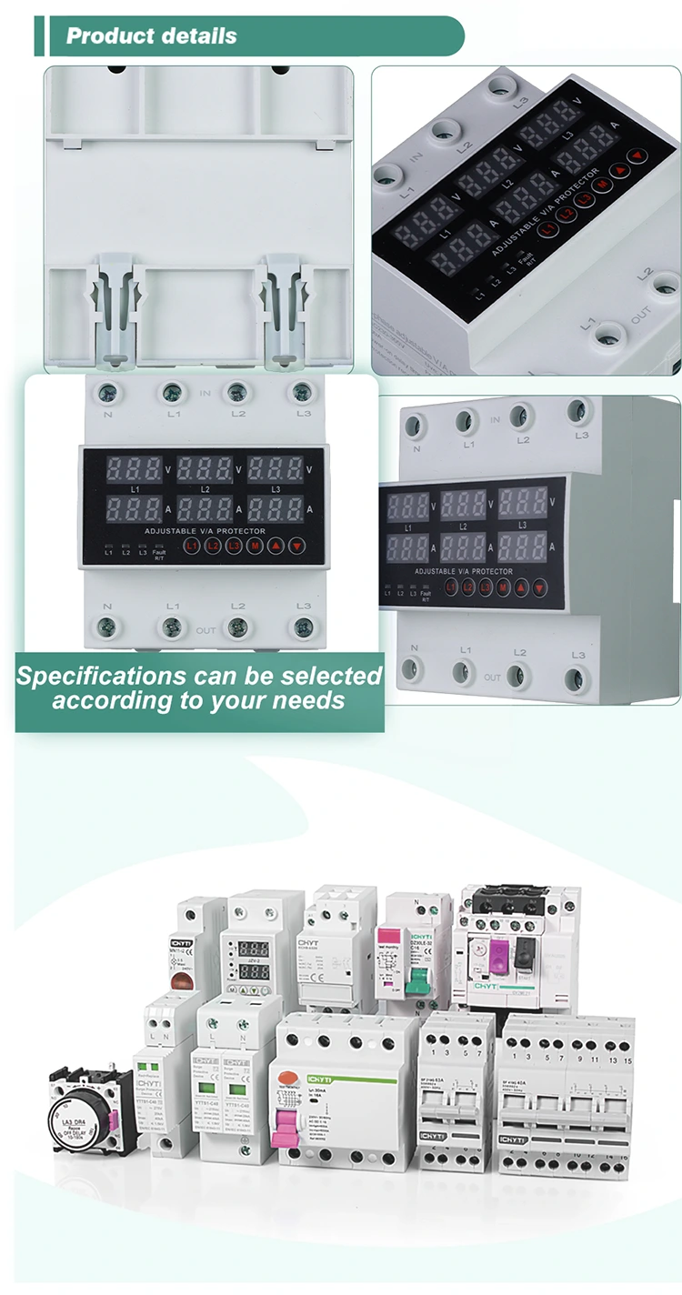 Są wyposażone w cyfrowy wyświetlacz i są wykonane z importowanych modułowych komponentów elektronicznych, co zapewnia wysoką niezawodność i wydajność. W przypadku nietypowych napięć, takich jak przepięcie, zbyt niskie napięcie lub wahania sieci, zabezpieczenia mogą automatycznie i szybko odciąć zasilanie, a następnie przywrócić je, gdy napięcie powróci do normy.